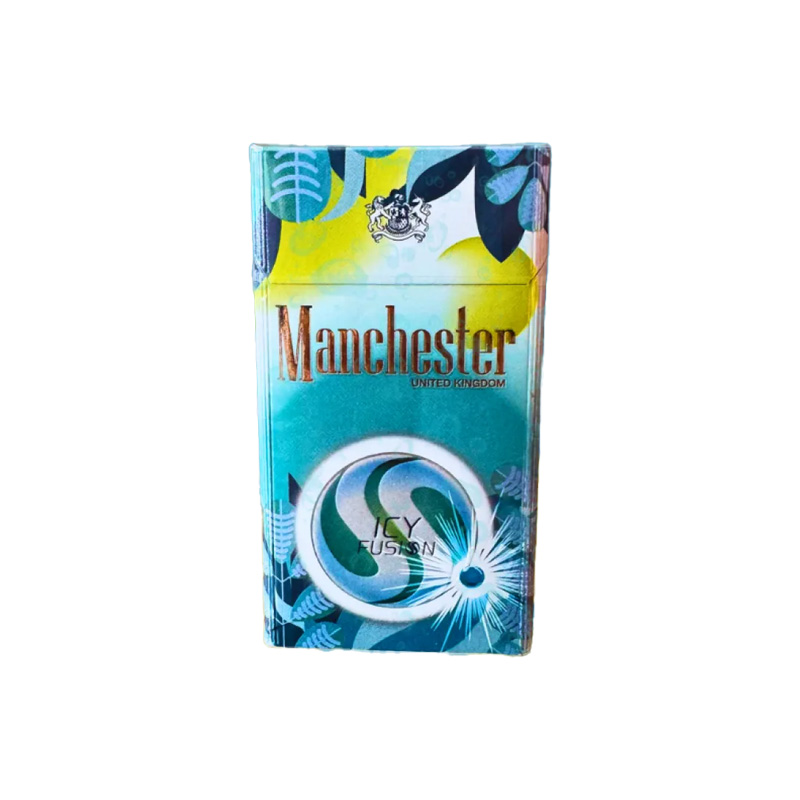 | Packaging | Vibrant teal hard pack with tropical leaf/lemon graphics, “Manchester Icy Splash” labeling |