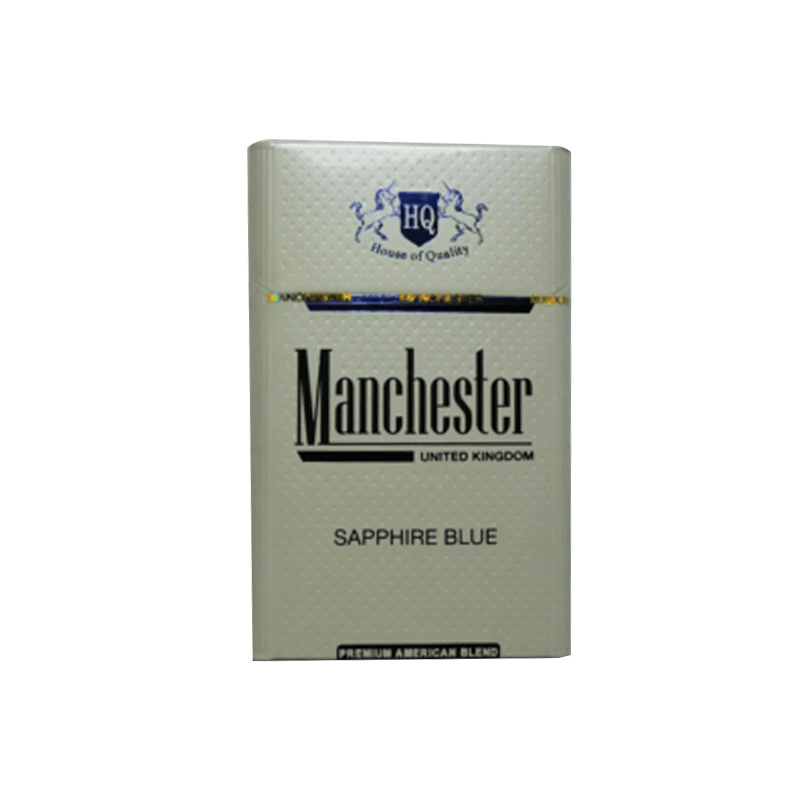 Packaging Light blue hard pack with silver trim, “House of Quality” crest, and “Sapphire Blue” labeling